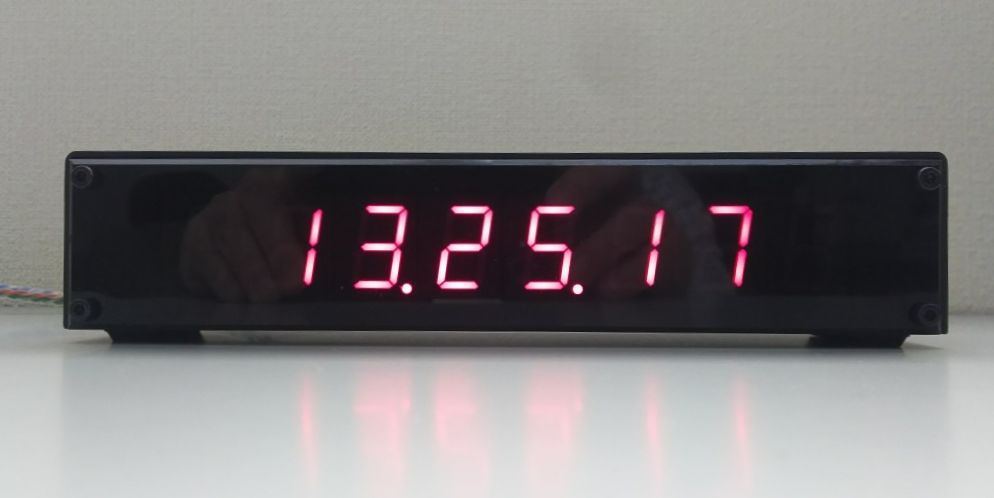 局内時計のリアルタイムコードを受け、時刻表示を"時分秒"の6桁LED表示します。